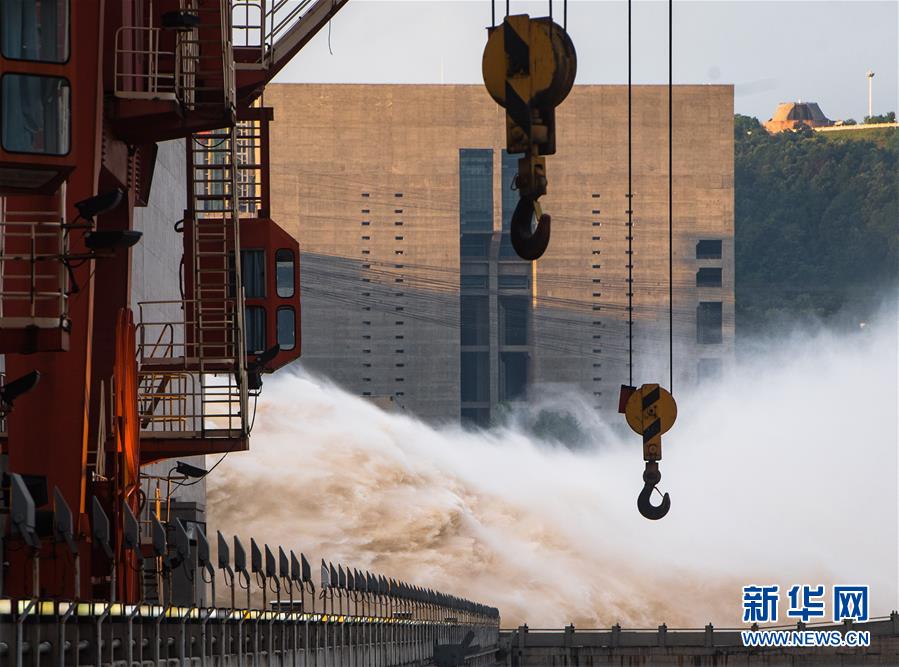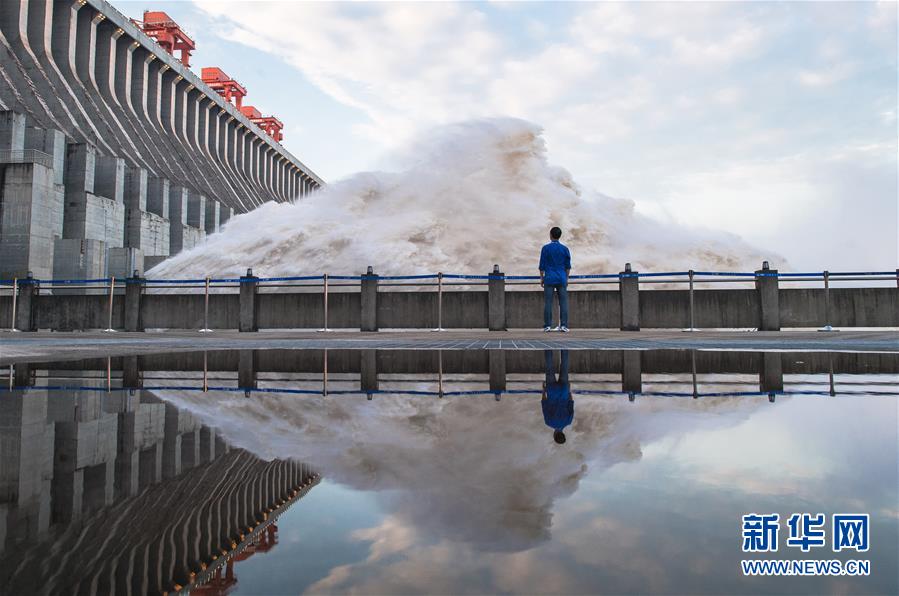 7月19日,三峡枢纽开启泄洪深孔泄洪。19日20时,三峡水库入库流量4.6万立方米/秒,较本轮洪水的峰值6.1万立方米/秒下降了1.5万立方米/秒。“长江2020年第2号洪水”平稳通过三峡大坝。新华社记者肖艺九摄