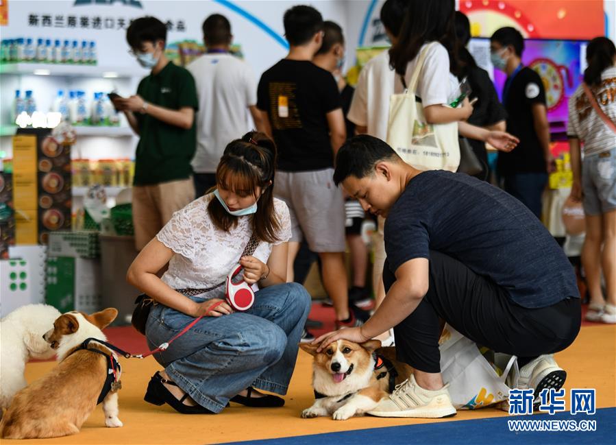 7月19日,在成都世纪城新国际会展中心,消费者和宠物狗玩耍。当日,第九届成都国际宠博会进入最后一天。此次展会展出面积30000平方米,汇聚国内外品牌企业和产品,覆盖中西部地区宠物行业食品、用品、医疗和服务等领域。新华社记者王曦摄