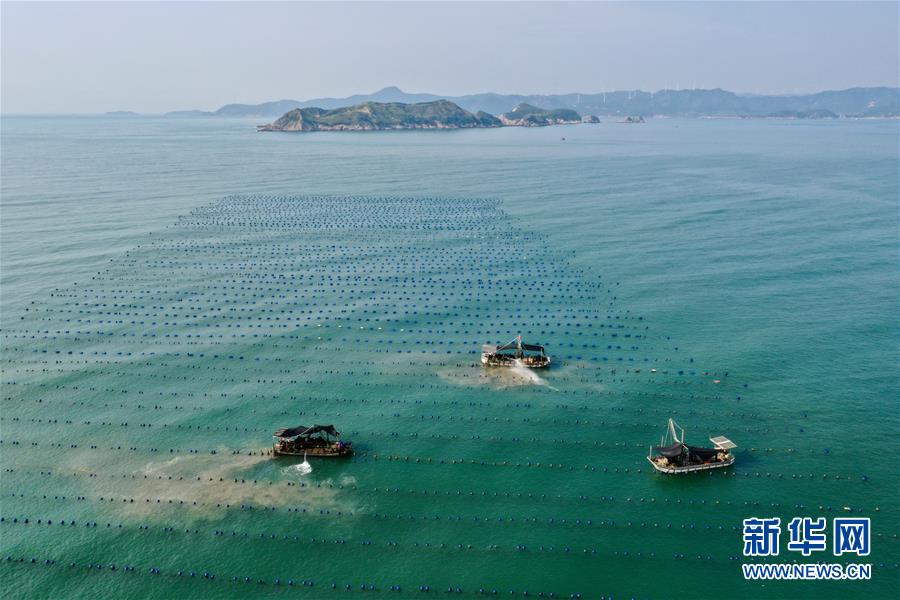 在福建省霞浦县长春镇秋竹岗村海域,每日清晨四五点,养蚝人出海开始一天的劳作,先将塑料浮球下的生蚝网笼吊出海面用高压水枪清洗生蚝壳上的淤泥,随后运至海上平台根据个头大小分拣,大的售卖,小的再运回蚝田分区养殖。2015年,秋竹岗村养殖大户俞开明率先从山东引进三倍体生蚝优质品种,试养成功后逐渐形成规模,在帮助周围群众海上就业的同时,也带动30多户渔民陆续转产养起生蚝。目前秋竹岗村生蚝总养殖面积达4000余亩,个大肉鲜的三倍体生蚝深受市场欢迎,成为群众养殖致富的好项目。霞浦县海域广阔,滩涂众多,是远近闻名的海产养殖大县,2019年全县水产品总产值达103亿元。方兴未艾的生蚝养殖,让这个海产大县有望打造新的海产名片。