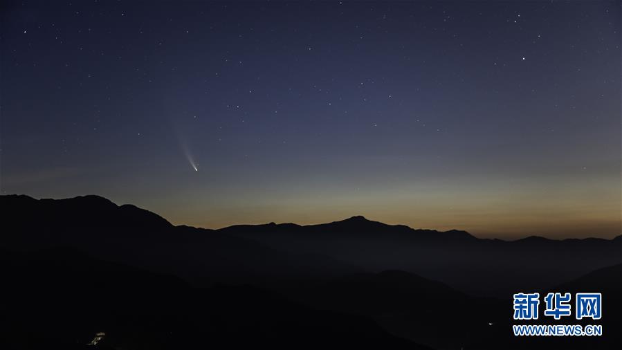 7月16日凌晨,在北京郊区拍摄的尼欧怀兹彗星划过天际。新华社记者孟鼎博摄