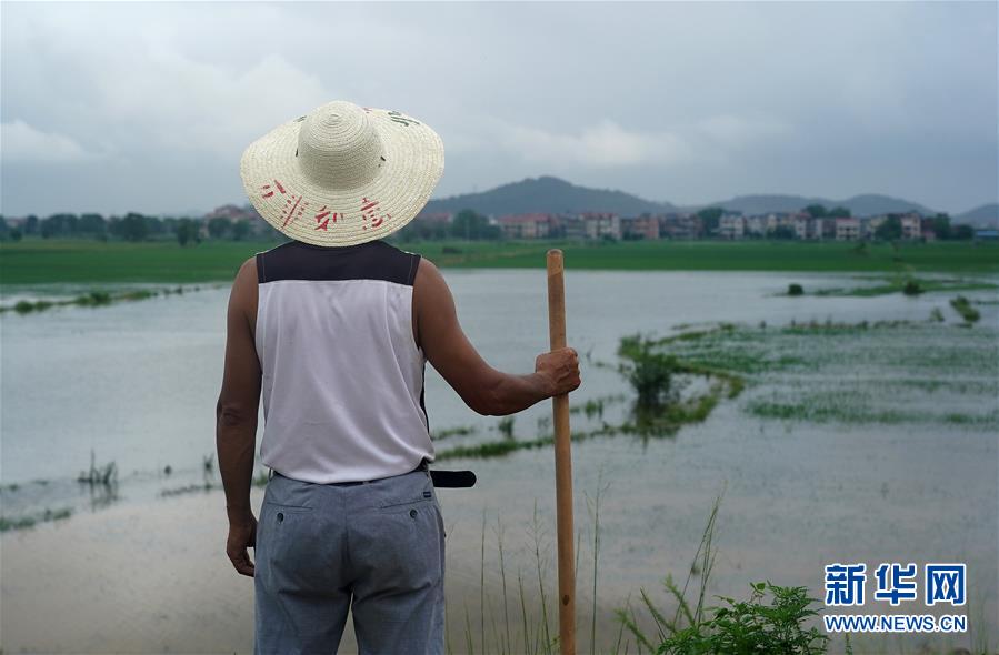7月9日,邵忠如在圩堤上观察水情,不远处就是他的村子。邵忠如是江西省乐平市乐港镇邵湾村党支部书记,今年56岁,负责中洲圩中一段700多米长的圩堤的巡堤守堤工作。身前是洪水,身后是村子和稻田,老邵不敢有半点疏忽。6天6夜,老邵和村民们不间断地值守在圩堤上,一天4个班,一班6人,每半小时巡堤一次,发现险情立即处置。作为村支书,老邵更是几乎全天都在圩堤上,实在困了才会睡一会儿。新华社记者万象摄