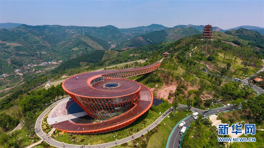 这是6月15日拍摄的四川省成都市龙泉山城市森林公园丹景山观景台(无人机照片)。新华社记者王曦摄
