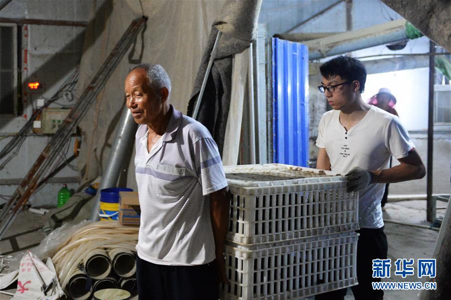 7月20日凌晨,在位于蒙洼蓄洪区内的郜台乡桂庙村,一家养鸡场的工作人员紧急转移鸡苗。新华社记者黄博涵摄
