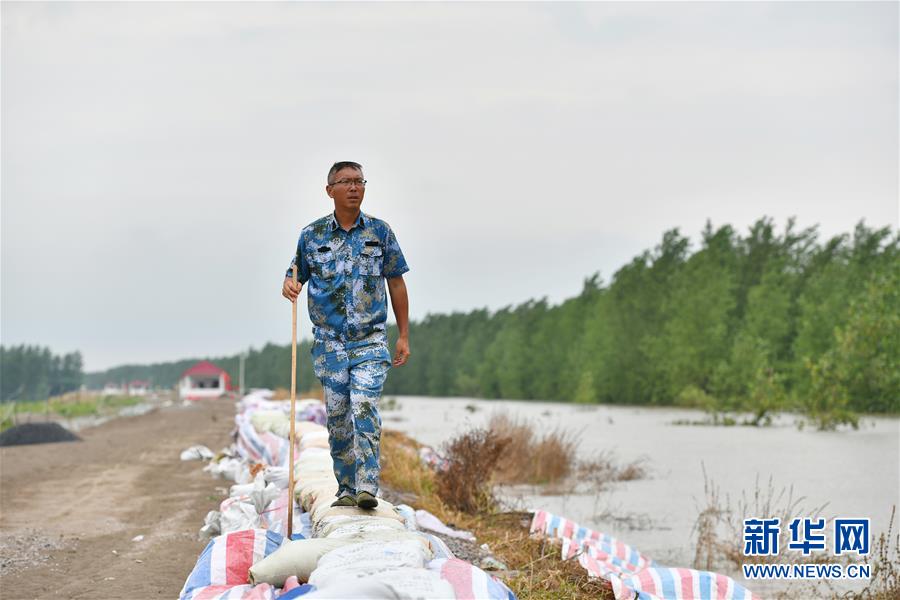 刘良武在江洲镇的长江堤坝上巡查(7月19日摄)。新华社记者李鑫摄