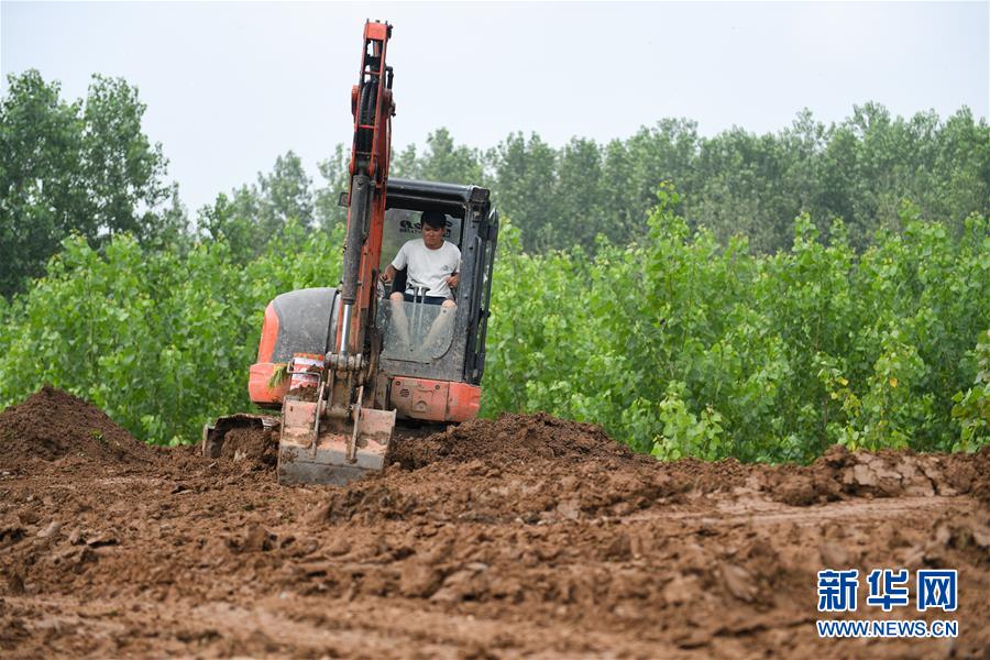 7月20日,在永固垸西线防洪大堤,工作人员处置渗漏险情。新华社记者陈泽国摄