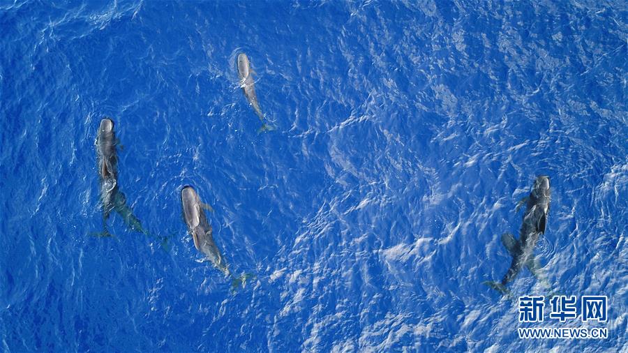 这是7月20日在南海某海域拍摄的短肢领航鲸(无人机照片)。新华社记者张丽芸摄