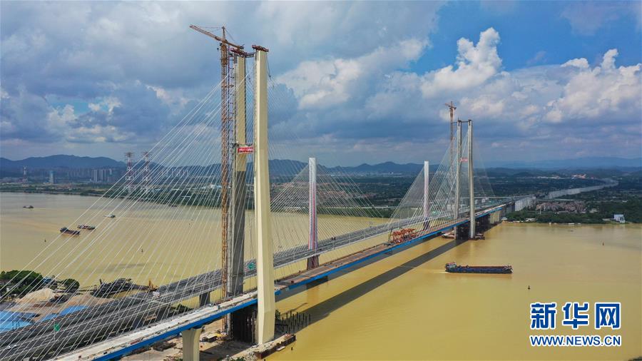 当日,中铁十一局承建的粤港澳大湾区基础设施“硬联通”重点工程——广州南沙港铁路跨西江特大斜拉桥完成最后一组斜拉索吊装,大桥预计在7月底合龙。该桥位于广东佛山市和江门市交界处,全长1117.5米。