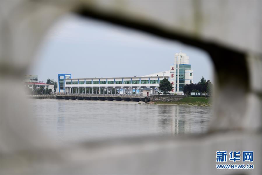 这是7月22日在安徽省阜南县拍摄的淮河王家坝闸。7月22日14时,淮河王家坝水位降至28.73米,超警戒水位1.23米,低于保证水位0.57米。新华社记者张端摄