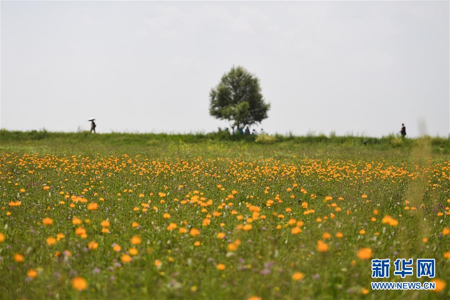 这是7月22日拍摄的金莲川草原。金莲川草原位于内蒙古自治区锡林郭勒盟正蓝旗,正值盛夏,金莲川草原上鲜花绽放,景色宜人。新华社记者刘磊摄