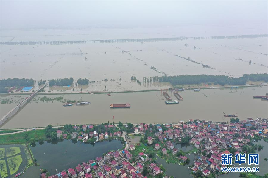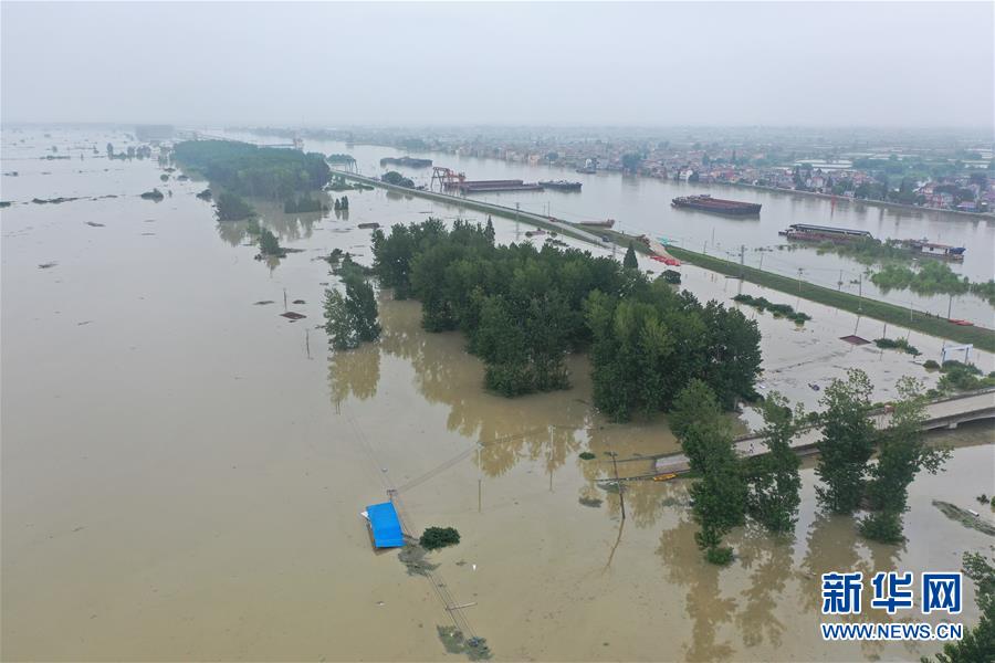 7月21日拍摄的被淹的南京市高淳区阳江镇胜利圩(无人机照片)。新华社记者季春鹏摄