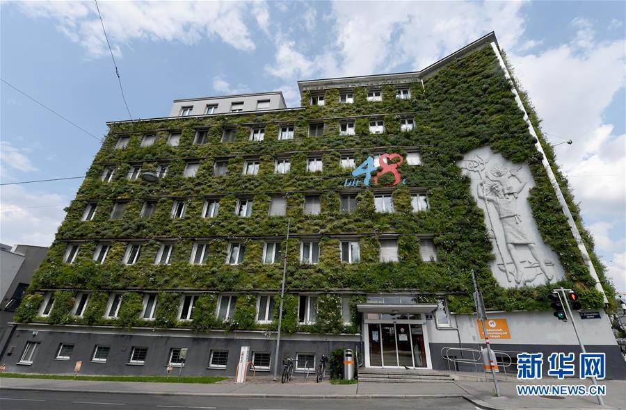 这是7月22日拍摄的奥地利维也纳市政管理局废物处理办公总部(MA48)外景。奥地利首都维也纳的市政管理局废物处理办公总部的外墙被种植的绿色植物覆盖,成为了维也纳市建设绿色城市、节能减排的“示例楼”。据介绍,这个外墙项目建立于2010年,每年在夏季为该建筑自然降温、增加湿度,从而减少空调的使用,并可吸收二氧化碳。维也纳市政府提倡市内建筑建设绿色外墙,并提供资金支持。新华社记者郭晨摄
