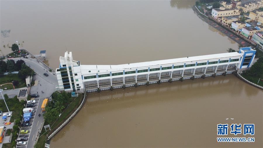 这是7月23日在安徽省阜南县拍摄的关闸后的淮河王家坝闸闸下水位。当日13时,淮河干流王家坝闸关闸,停止向蒙洼蓄洪区泄洪。新华社记者张端摄