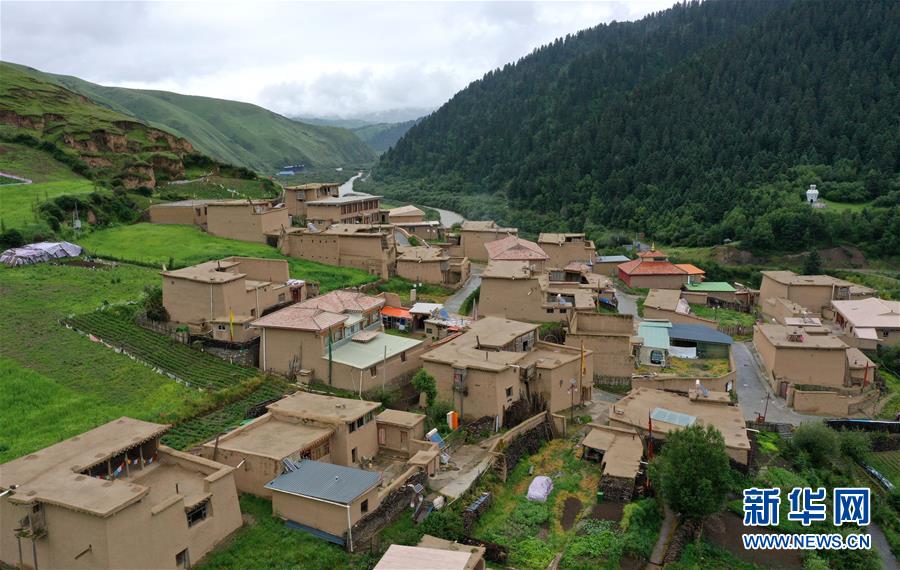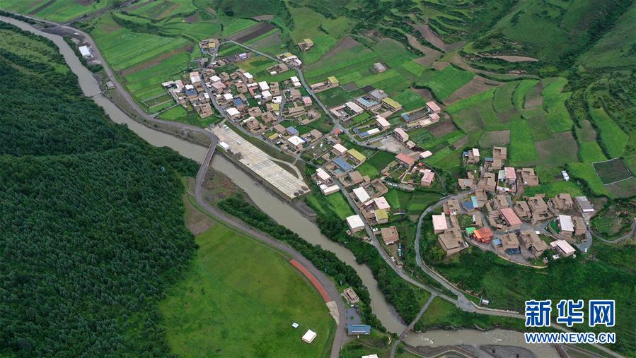7月5日拍摄的阿坝县查理乡神座村(无人机照片)。新华社记者陈天湖摄