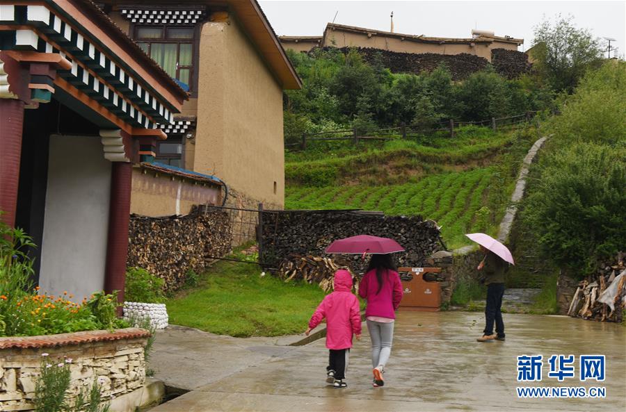 雨中踏访,静谧、安详、干净是神座村带给记者的第一印象。空气也仿佛是刚刚清洗过,沁人心脾。一幢幢藏家土黄色泥墙民居,面朝茂密的森林,坐落在鲜花盛开的草场上。轻轻敲开藏族群众拉青家的门,48岁的拉青便领着记者参观他家的民宿。他告诉记者,2017年,他卖掉家里的367头牦牛,收入200多万元,用其中一半的钱建起气派的民居,开起客栈。第二年,客栈收入就超过15万元,加上售卖土特产收入7万多元,他家四口人当年收入超过22万元。在他带领下,先后有10多户牧民卖牛下山办民宿,破解了神座村过度放牧给生态环境造成压力的难题。
