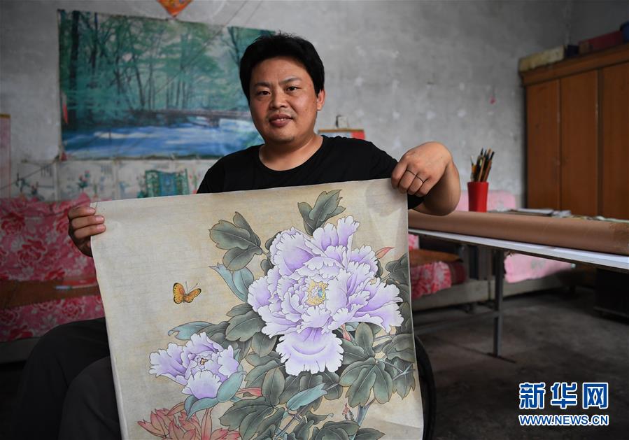7月22日,王红彬展示其创作的工笔画作品。新华社记者朱旭东摄