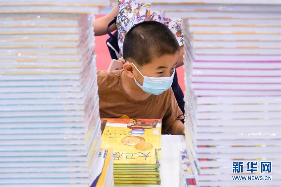 7月23日,一名小读者在书展上阅读。当日,第十届江苏书展在江苏苏州开幕,400多家出版发行单位参展,吸引众多读者选购图书。新华社记者李博摄