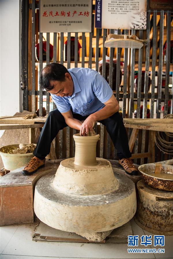 母先才在自家陶艺馆里制作陶器(6月16日摄)。新华社记者 陶亮 摄