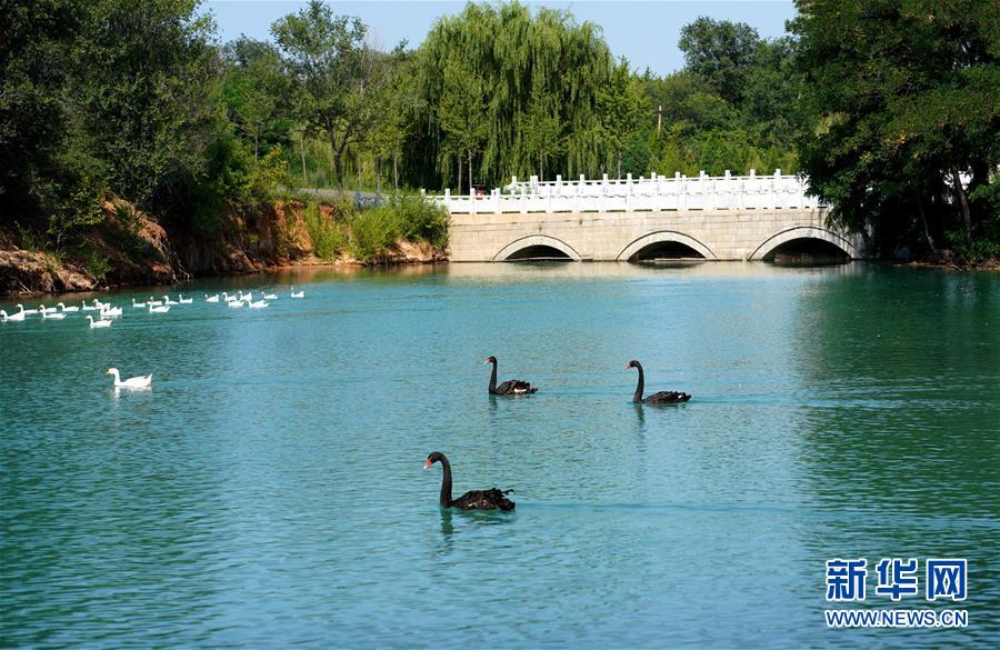 这是7月26日在栾卸村湖区拍摄到的天鹅。盛夏,位于太行山区的河北省沙河市栾卸村满目葱茏,山水、田园、民居构成一幅美丽乡村图景。新华社记者 牟宇 摄