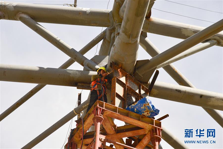 7月27日,工人在拉萨贡嘎国际机场T3航站楼的工地上作业。新华社记者 田金文 摄
