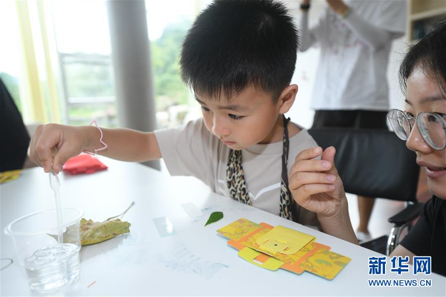 7月27日,导师带领小朋友制作植物标本。新华社记者 翁忻旸 摄