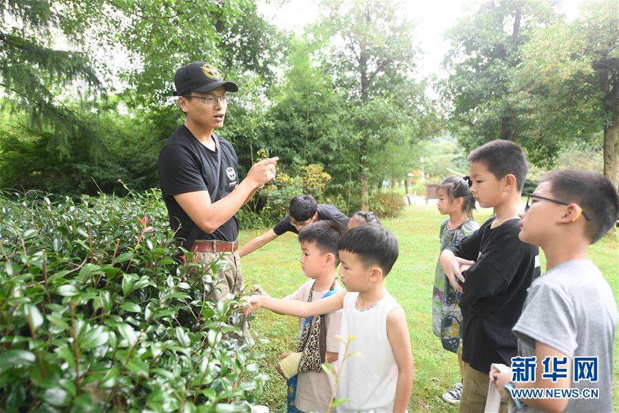 7月27日,导师带领小朋友们观察植物。新华社记者 翁忻旸 摄