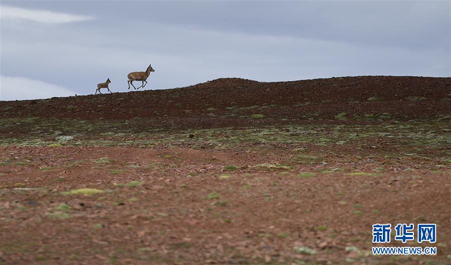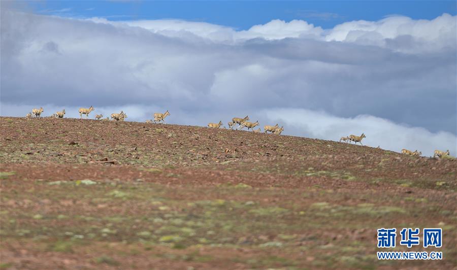 这是7月7日在可可西里卓乃湖区域拍摄的藏羚羊。新华社记者张龙摄