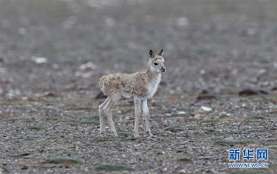 这是7月7日在可可西里卓乃湖区域拍摄的一只藏羚羊幼仔。新华社记者张龙摄