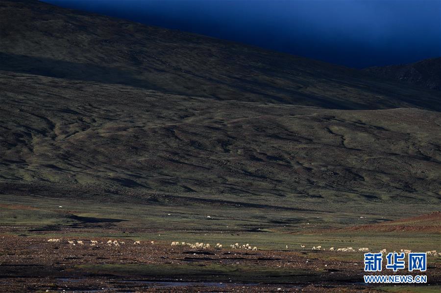 这是7月7日在可可西里卓乃湖区域拍摄的大群藏羚羊。新华社记者张龙摄