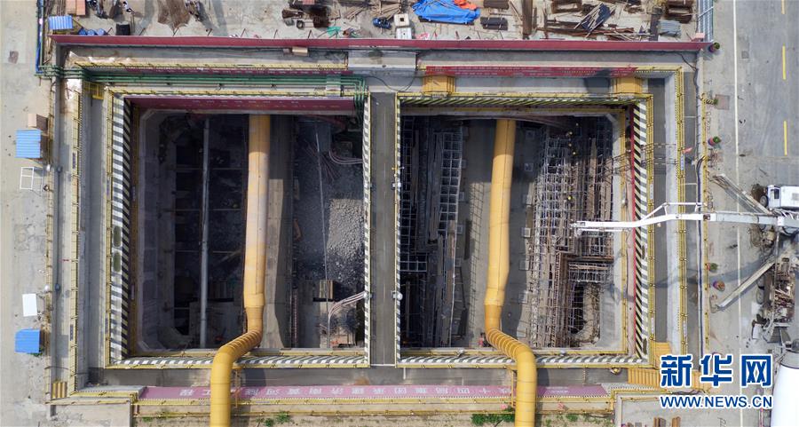 7月29日,“万里黄河第一隧”——济南黄河隧道工程施工人员在施工作业(无人机照片)。新华社记者王凯摄
