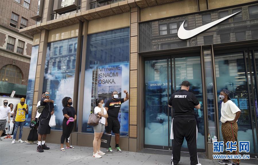 7月30日,人们在美国纽约苏豪商业区等待进店购物。美国商务部30日公布的首次预估数据显示,受新冠疫情导致经济大面积“停摆”和消费停滞拖累,今年第二季度美国实际国内生产总值(GDP)按年率计算下滑32.9%,创1947年有记录以来最大降幅。新华社记者王迎摄