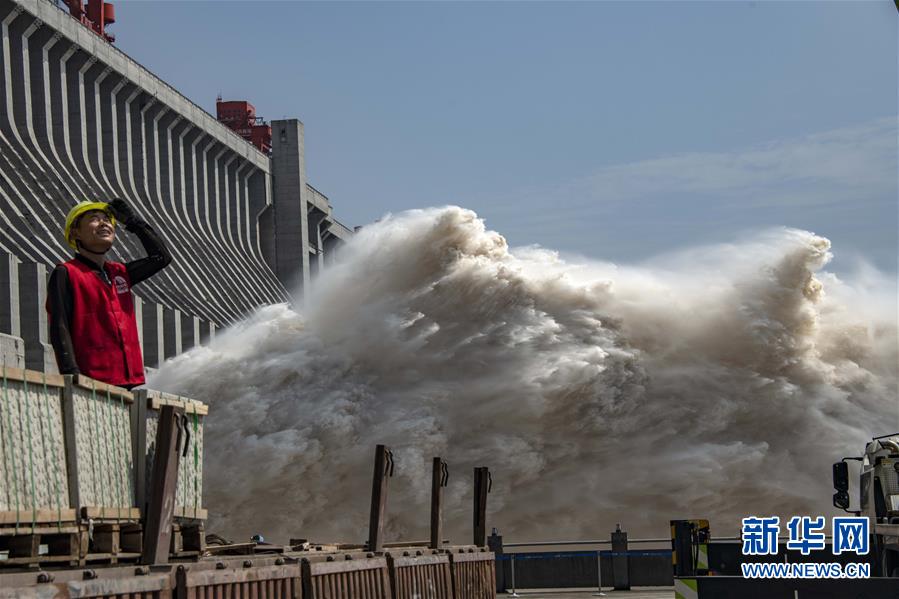 三峡枢纽工程开启泄洪深孔泄洪(7月31日摄)。新华社记者杜华举摄