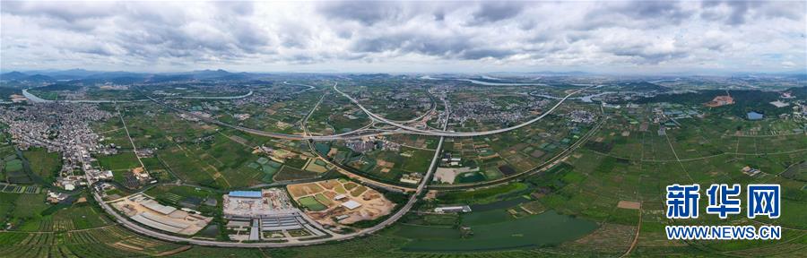 这是已经建设完成的潮汕环线高速公路上北互通立交,沈海高速公路从该互通立交下面穿过(无人机照片,7月31日摄)。新华社记者刘大伟摄