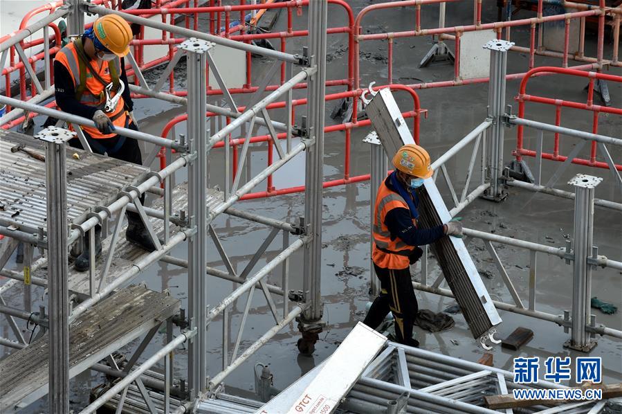 8月1日,工人在香港一工地工作。新华社记者卢炳辉摄