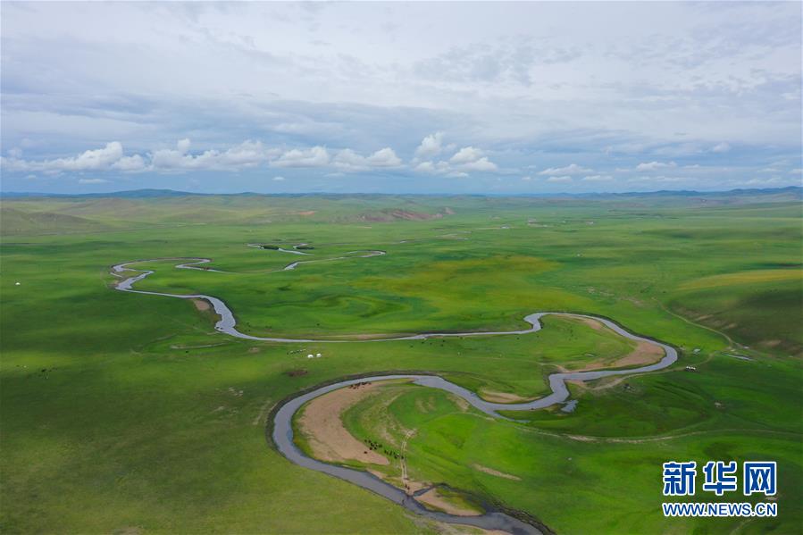 这是在呼伦贝尔陈巴尔虎旗牧云山顶拍摄的莫日格勒河(8月3日摄,无人机照片)。今年暑期,内蒙古呼伦贝尔通过暂行周末2.5天弹性休假工作制度,发放旅游、餐饮消费券,景区推出优惠促销活动等措施,提振当地旅游市场。新华社记者徐钦摄
