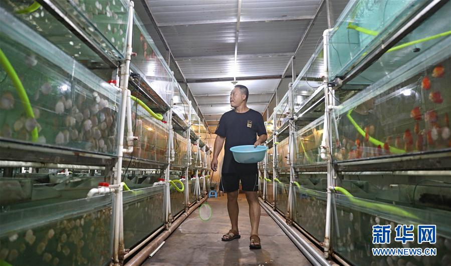 近年来,在辽宁省鞍山市宁远街道张忠堡村,许多村民投身观赏鱼养殖业,当地采取“协会+合作社+农户”模式,利用鞍山三台子观赏鱼交易中心平台,将养殖的观赏鱼销往东北三省以及河北、内蒙古、天津等地。小小观赏鱼,如今已成为村民重要的致富手段。新华社记者姚剑锋摄