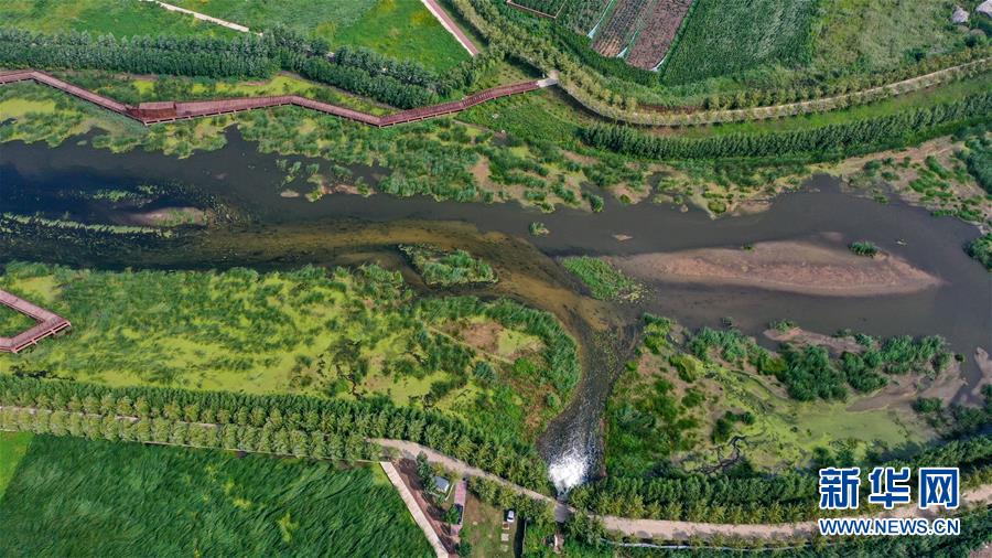 图为8月4日拍摄的中核四平污水处理厂排污口(无人机照片)。排污口下游现已成为四平市西湖湿地公园。吉林省四平市位于辽河流域上游,2018年以来,四平市对辽河流域进行了系统治理和生态修复,全市共计投入约49亿元,实施辽河流域水污染治理项目59个。2019年,四平市全域已消除劣五类水体,在国家地表水考核中,断面水质指数下降幅度连续4个季度蝉联全国第一,切实提升了人民群众的生态环境获得感和满意度。新华社记者张楠摄