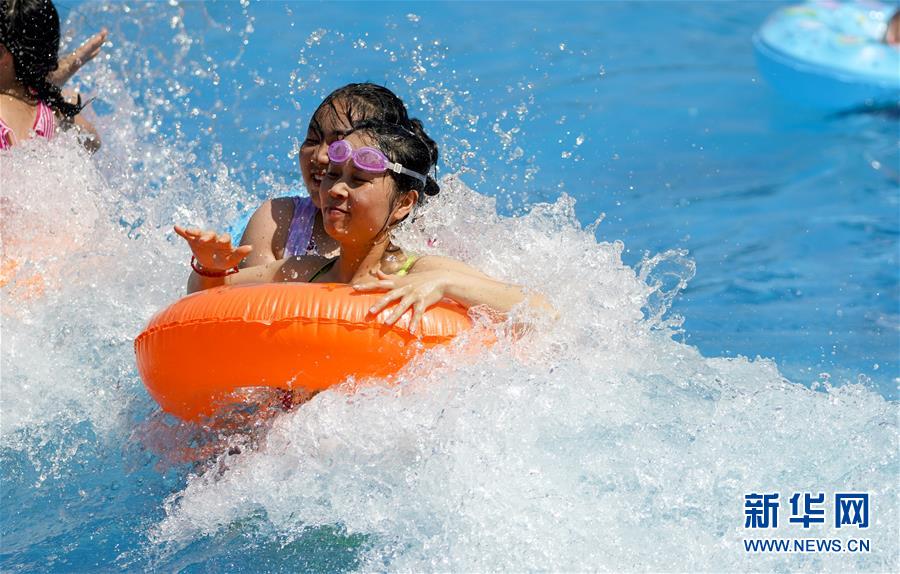 8月5日,重庆涪陵红酒小镇水上乐园内,市民在体验水上游乐项目。当日,重庆市气象台再次发布“高温橙色预警信号”,重庆大部分海拔400米以下地区日最高气温将升至37℃以上,局地可达40℃以上。许多重庆市民涌进当地的水上乐园和泳池,在水中享受夏季的清凉。新华社记者刘潺摄