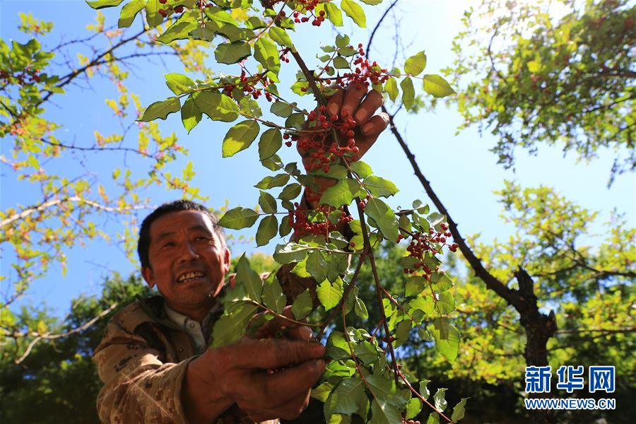 7月17日,舟曲县立节镇拉沟村的村民在摘花椒。新华社记者杜哲宇摄
