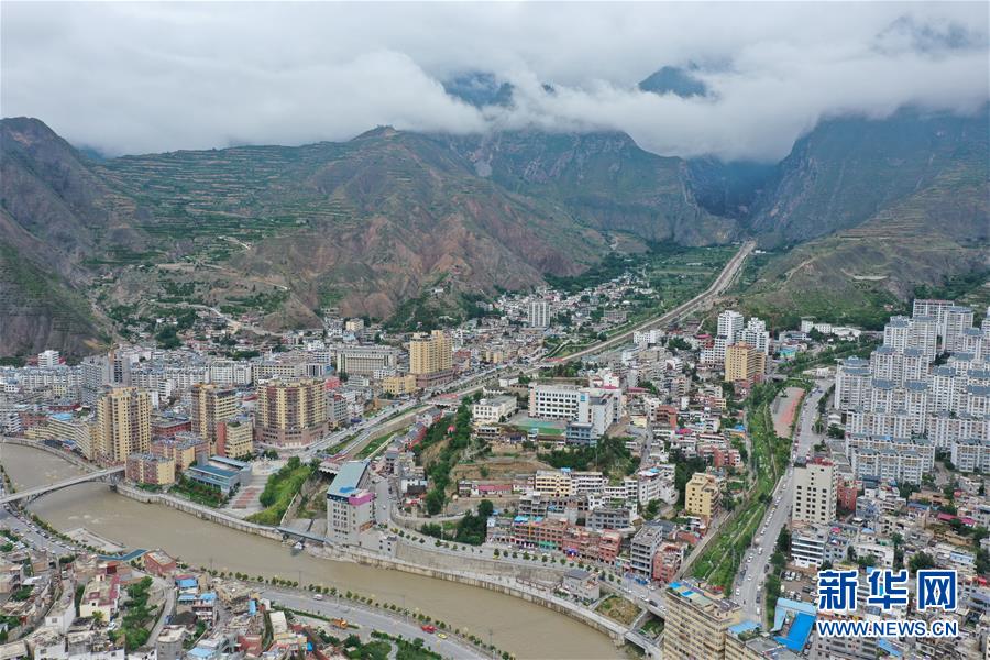 这是7月14日拍摄的舟曲县老县城(无人机照片)。新华社记者杜哲宇摄