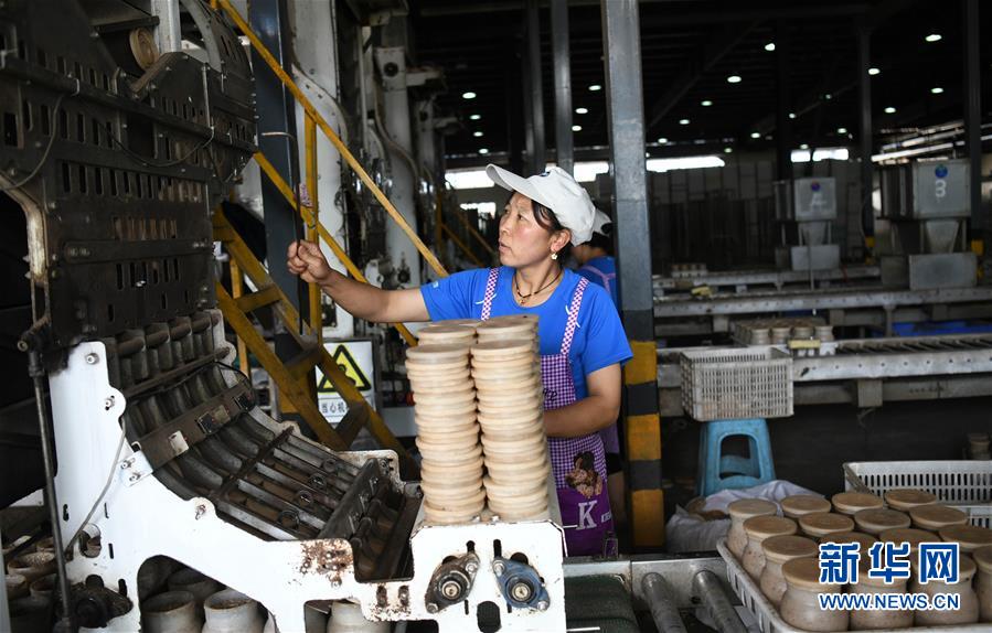 8月6日,工作人员在威宁雪榕生物科技有限公司制作菌棒。新华社记者金良快摄