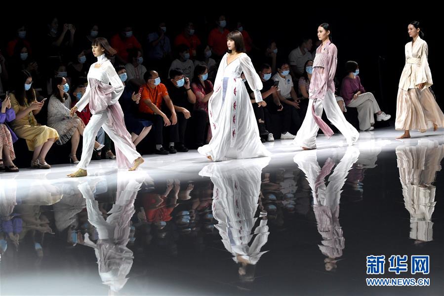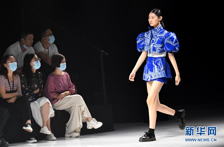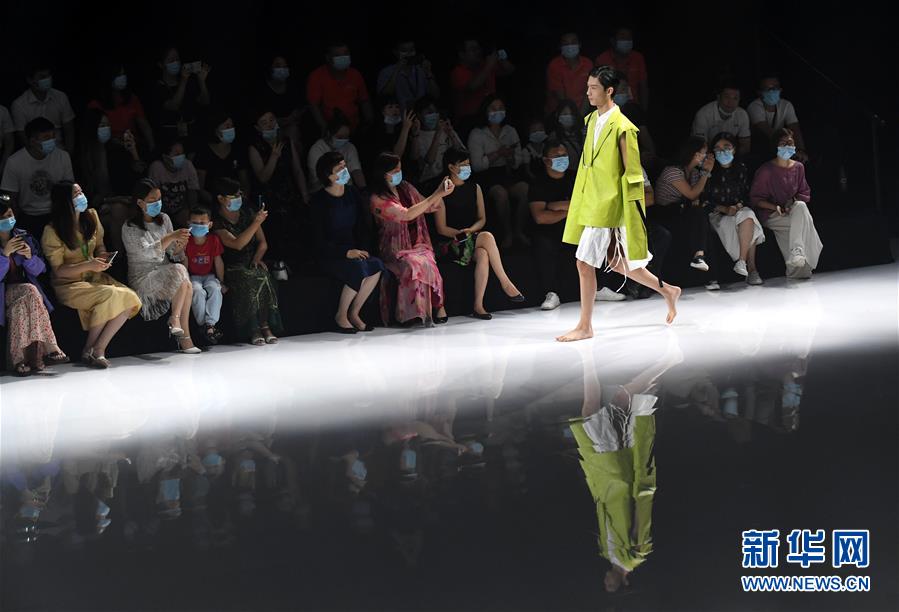 8月6日,模特在时装秀上展示时装。当日,2020中国(河南)国际大学生时装周举行河南大学生优秀服装设计专场展示。8月5日至7日,2020中国(河南)国际大学生时装周在河南省新密市豫发密兰小镇举行。新华社记者朱祥摄