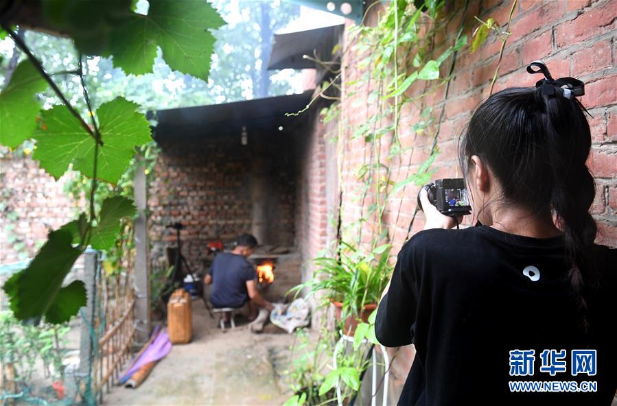 8月5日,王晓楠(右)在家中拍摄短视频。新华社记者郝源摄