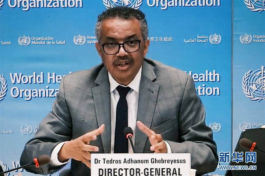 这是8月6日在比利时布鲁塞尔拍摄的世界卫生组织总干事谭德塞在瑞士日内瓦出席线上记者会的视频画面。世界卫生组织6日最新数据显示,全球新冠死亡病例累计已超70万例。新华社记者张铖摄
