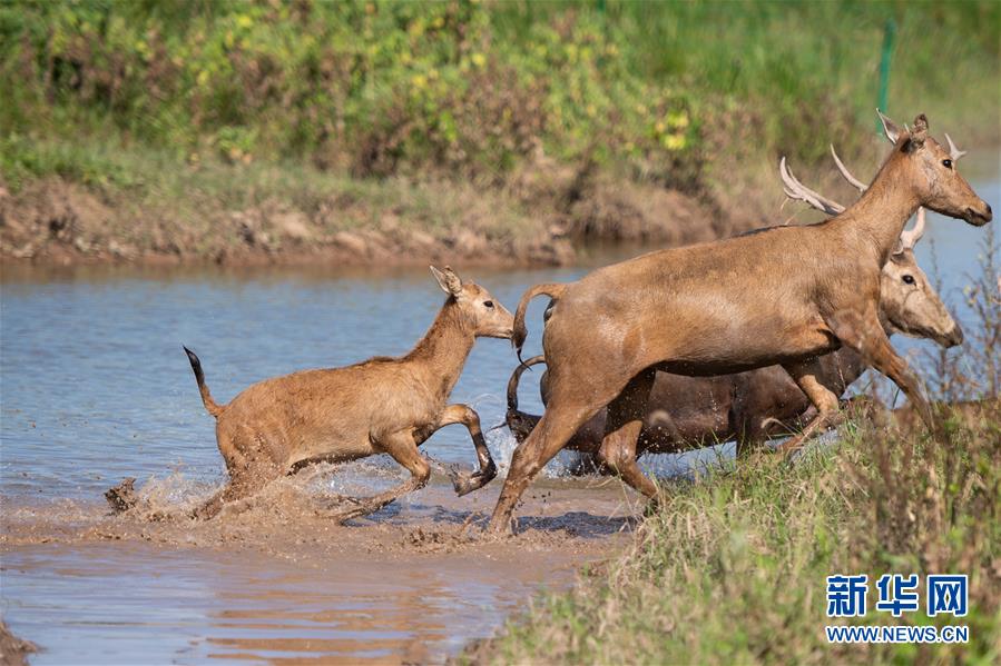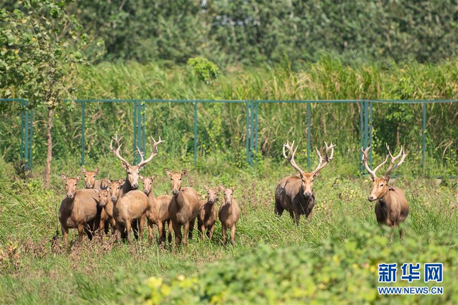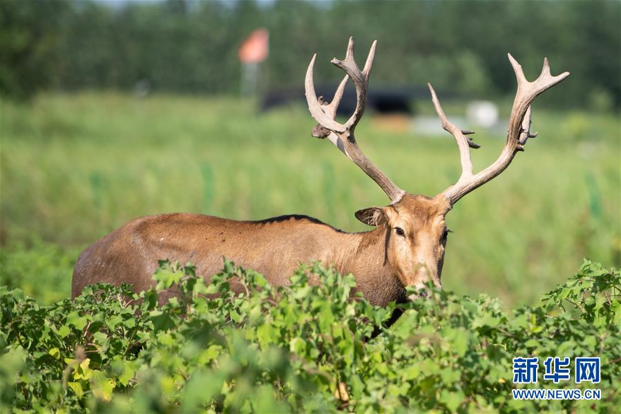 这是8月7日在东洞庭湖麋鹿和鸟类救治避难中心拍摄的麋鹿。位于湖南省岳阳市的东洞庭湖麋鹿和鸟类救治避难中心成立于2016年9月,占地400余亩,中心自建成后就承担起东洞庭湖区域全部麋鹿的救援、医治、康复和喂养任务。目前该中心共有14只麋鹿正在接受救助。新华社记者陈思汗摄