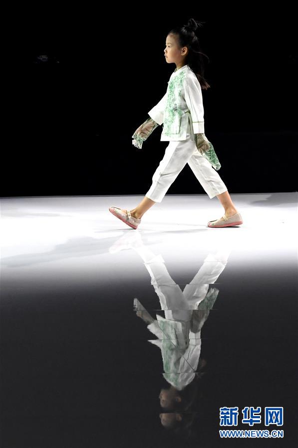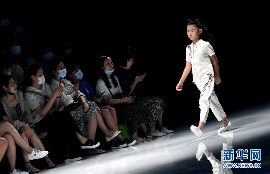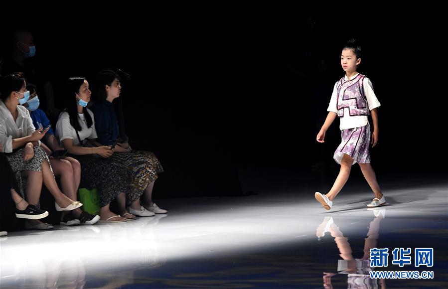 8月7日,小模特在T台上展示童装。当日,2020中国(河南)国际大学生时装周举行童装设计专场展示。8月5日至7日,2020中国(河南)国际大学生时装周在河南省新密市豫发密兰小镇举行。新华社发(海雨涵摄)
