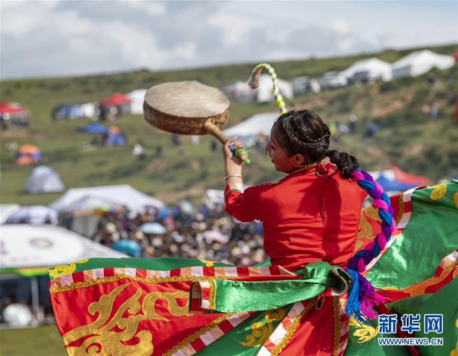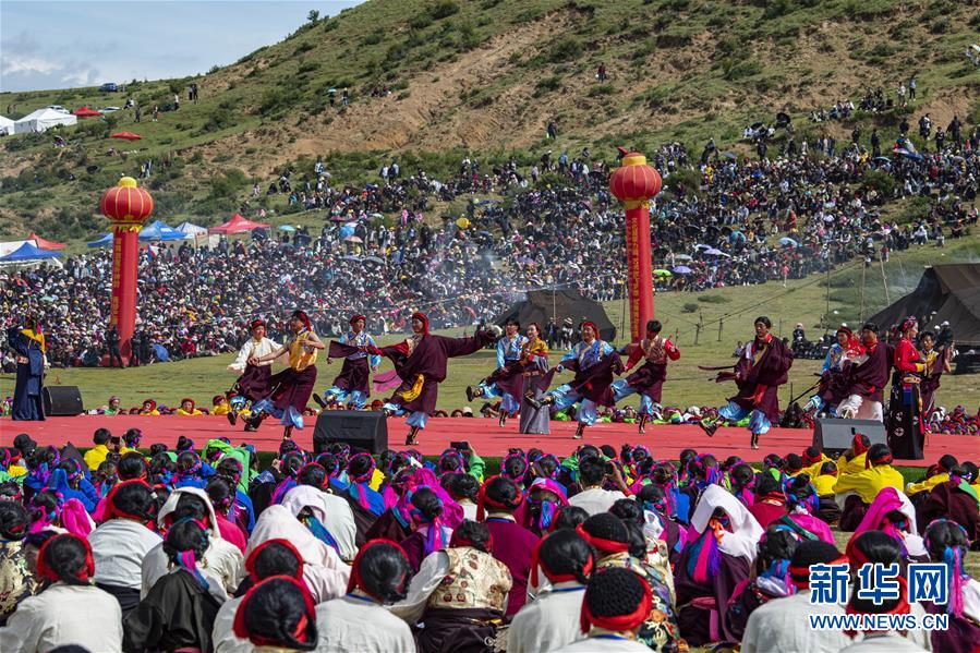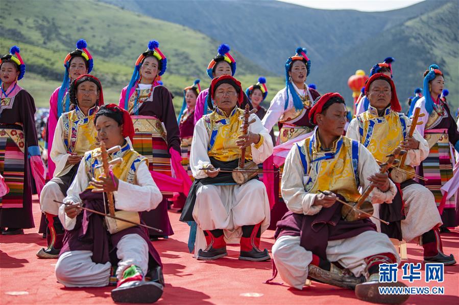 8月7日,在西藏首届弦子舞展演现场,演出人员在表演舞蹈《弦鼓情缘》。当日,西藏首届弦子舞展演在昌都市芒康县举行。众多演员同台献艺,表演国家级非物质文化遗产弦子舞,吸引西藏各地的群众前来观看。新华社记者孙非摄