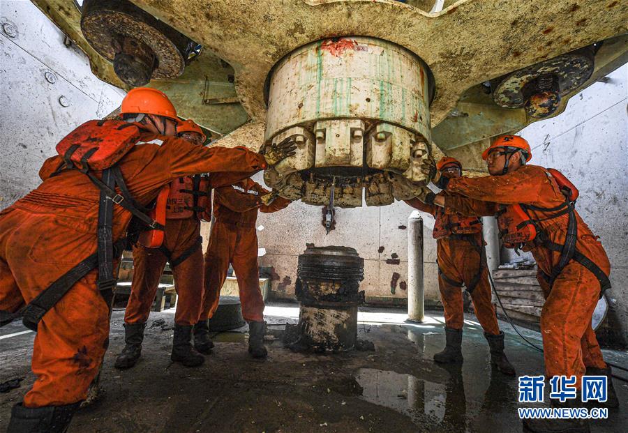 7月27日,工人在位于南海北部海域的勘探三号钻井平台上作业。新华社记者蒲晓旭摄