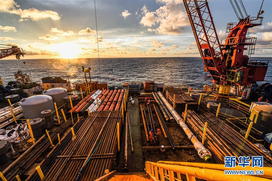 这是7月21日在南海北部海域拍摄的勘探三号钻井平台甲板。新华社记者蒲晓旭摄