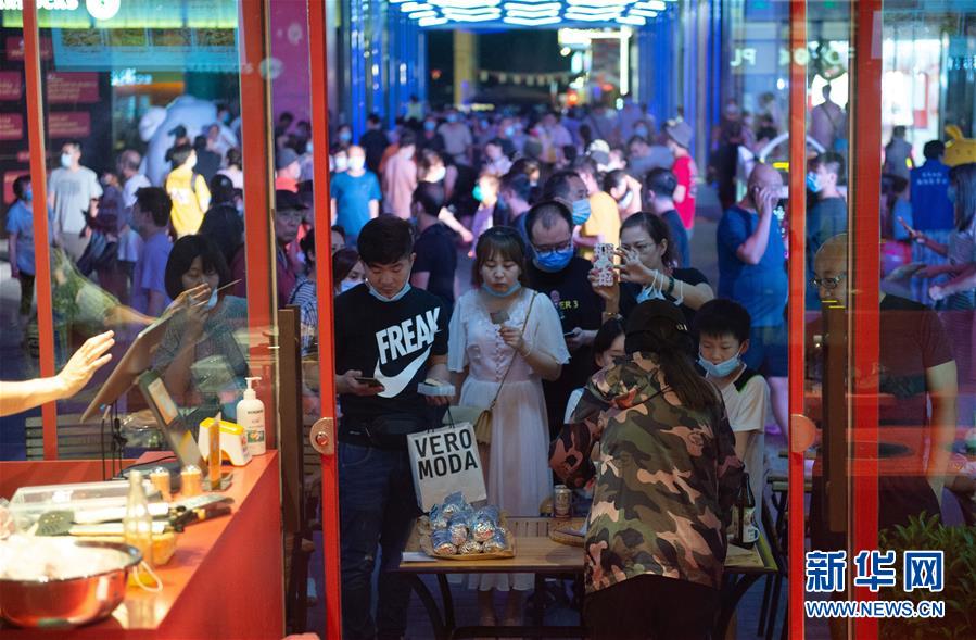8月8日晚,市民在望京小街商业街购买小吃。新华社记者 陈钟昊 摄