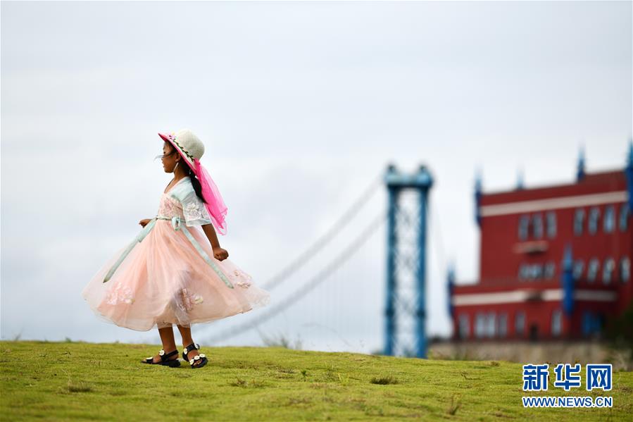 8月8日,小游客在贵州省龙里油画大草原上游玩。近日,贵州省黔南布依族苗族自治州龙里县境内气候宜人,龙里油画大草原、“龙门镇”武侠文化主题景区等景点吸引众多游客前来观光旅游。新华社记者杨文斌摄。